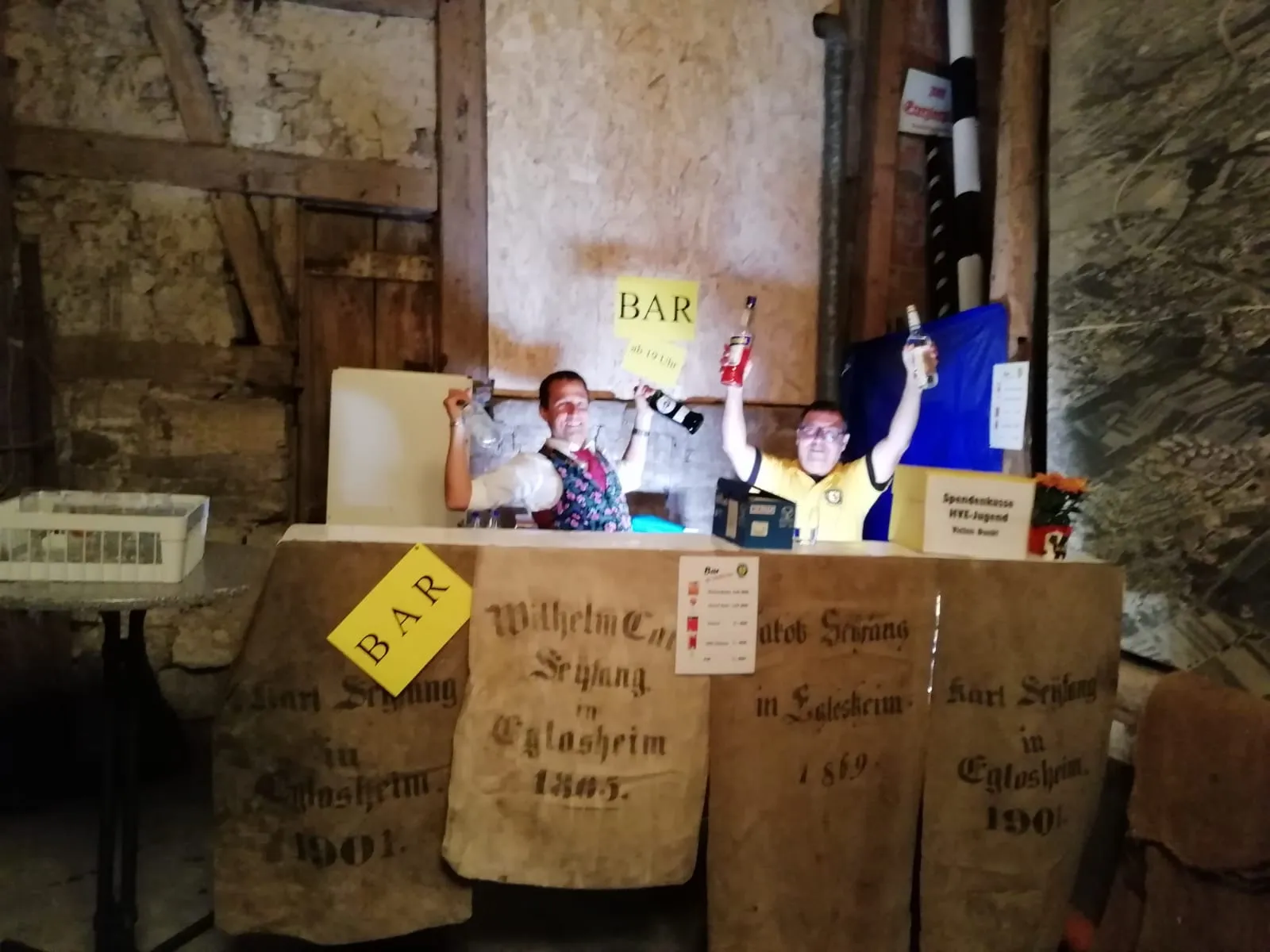 Für die durstigen Kehlen wurde, von unseren Jugendleitern, ab 19 Uhr der Barbetrieb in der Scheune aufgenommen. Die selbstgemachte Pfirsichbowle der absolute Renner unter den Mixgetränken und fand reißenden Absatz.